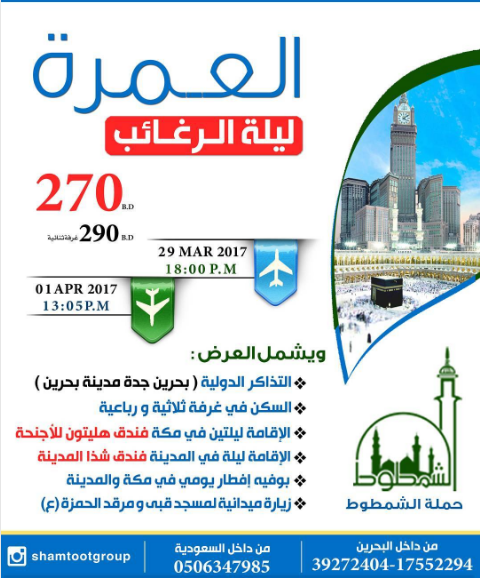 العمرة بالطائرة في ليلة الرغائب abbas shamtoot 18 مارس، 2017 الرحلات, العمرة 2,355 زيارة شاركها Facebook Twitter Stumbleupon LinkedIn Pinterest